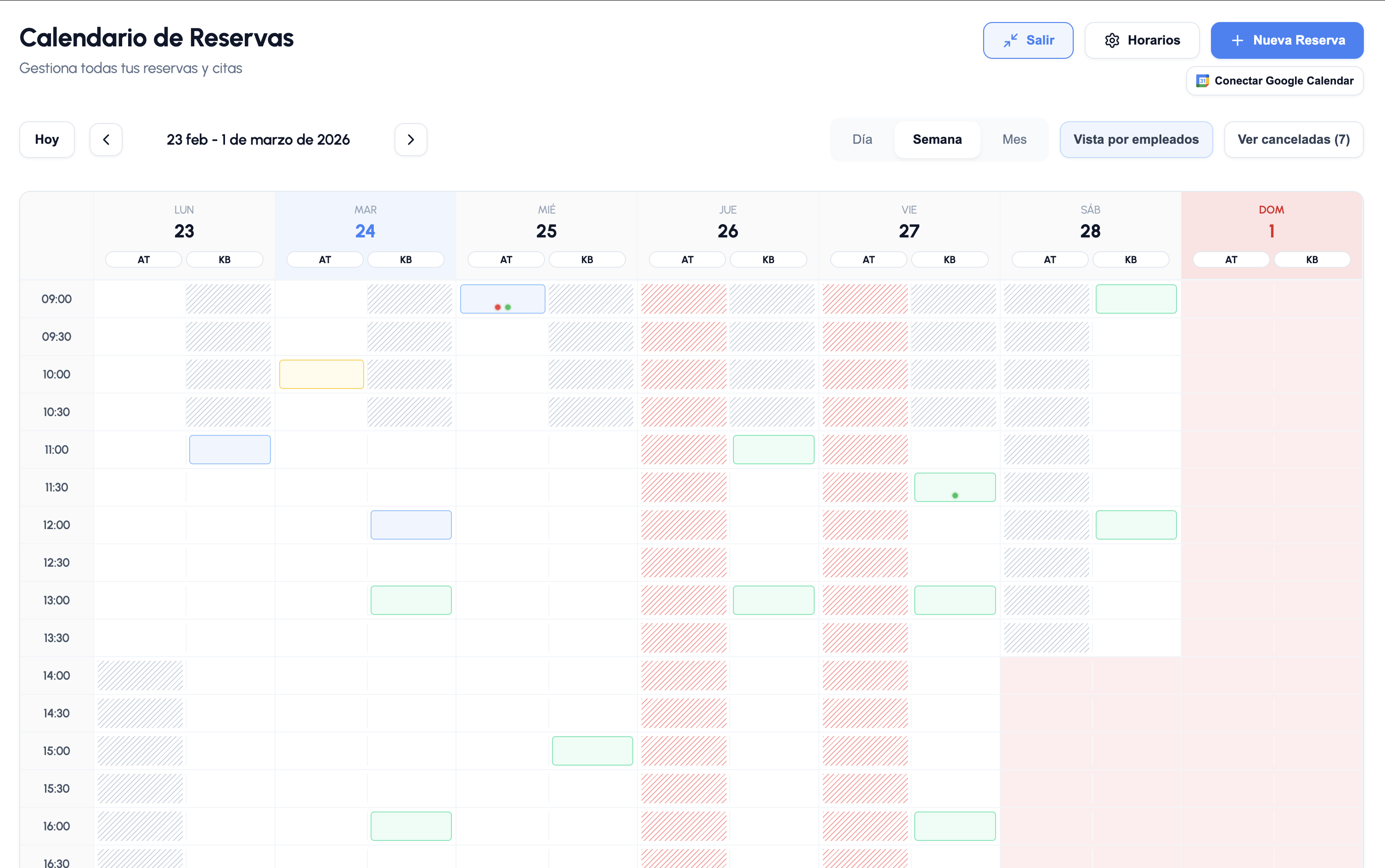 Organiza turnos, disponibilidad y citas de todo el equipo en una sola vista. Lo que ves es exactamente lo que usa tu negocio cada dia.
